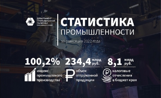 В первом полугодии индекс промышленного производства на Кубани составил 100,2%