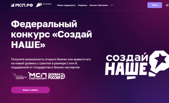 В России стартовал конкурс для молодых предпринимателей «Создай НАШЕ» с призовым фондом 100 млн рублей