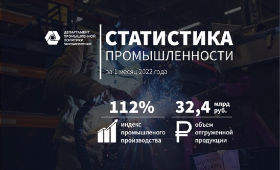 По итогам января 2022 года промышленное производство на Кубани выросло на 12%