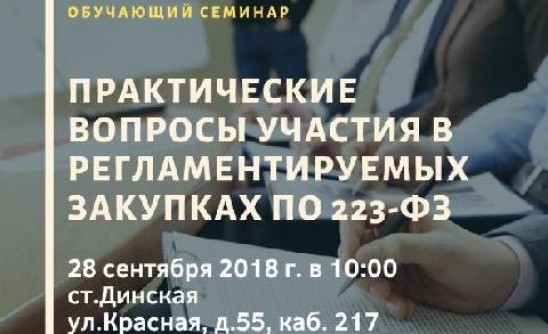 В малом зале районной администрации пройдет семинар на тему «Практические вопросы участия в регламентируемых закупках по 223-ФЗ»